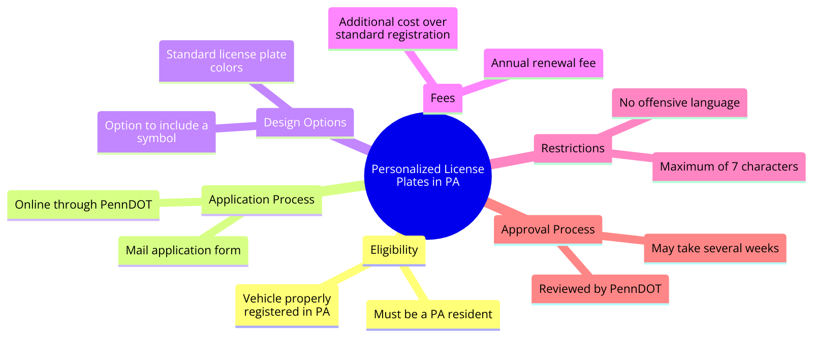 - Annual Renewal Fee: Personalized plates require an annual renewal, just like standard license plates. You will be responsible for paying a renewal fee each year to keep your custom plate in use. Be sure to check the current renewal fee on the PennDOT website or your renewal notice.